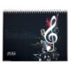 Um calendário encheu-se com as imagens abstratas da nota do cleft. A nota do cleft está características ligada cada mês com arranjos coloridos. Excelente para algum músico, professor ou qualquer um que amarem a música.