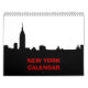 Calendário de Nova Iorque com fotos a preto e branco e imagens de arte digital artística.