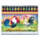 As pinturas originais da aguarela dos galos decoram cada mês.