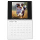Calendário com doze imagens de Pastores Australianos em jogo e em repouso.