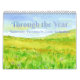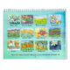 Um bonito calendário de doze meses com pinturas ao longo do ano, com animais, florais, paisagens e vegetais pintados em uma boa variedade de cores brilhantes.