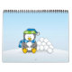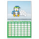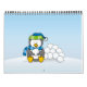Um pequeno desenho animado de pinguim sentado segurando uma bola de neve.