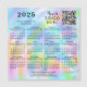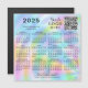 Este ímã de calendário de 2025 com um fundo colorido pastel que imita um design holográfico tem modelos para colocar seu logotipo, gerar um código QR (insira sua URL e a barra de código QR será gerada. Por favor, escaneie o código após a colocação para verificar antes de fazer o pedido), adicionar contatos da empresa, slogan ou outro texto para seus clientes e colegas. É uma ideia de presente prático para o Natal, Ano Novo, Dia de Ação de Graças ou outras ocasiões.
