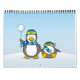 Um pequeno desenho animado de pinguim com bola de neve e um desmaiado.