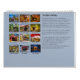 Calendário 2018, grande (esse é o tamanho que eu queria). As fotos são de acordo com o que aparece no site, além disso a qualidade do papel é muito boa, melhor do que normalmente se vê nos calendários.
