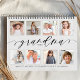 Mande um belo presente personalizado para a sua avó que ela apreciará. Os netos especiais personalizados e o calendário de colagens de fotos da família para mostrar suas próprias fotos e memórias especiais da família. O design frontal apresenta um simples design de grade de colagem de 8 fotos com "vovó" desenhado em um belo estilo de script preto manuscrito. Cada foto é emoldurada por uma simples imagem dourada. Personalizar com os nomes dos netos e familiares. Cada mês apresenta uma imagem do tamanho do cheio do solteiro com o mês escrito em uma elegante caligrafia preta, mostrada levemente sobre cada foto.