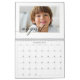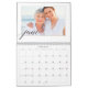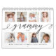 Mande um belo presente personalizado para o seu Grammy que ela vai apreciar. Os netos especiais personalizados e o calendário de colagens de fotos da família para mostrar suas próprias fotos e memórias especiais da família. O design frontal apresenta um simples design de grade de colagem de 8 fotos com "Grammy" desenhado em um belo estilo de script preto manuscrito. Cada foto é emoldurada por uma simples imagem dourada. Personalize com os nomes dos netos e familiares. Cada mês apresenta uma imagem do tamanho do cheio do solteiro com o mês escrito em uma elegante caligrafia preta, mostrada levemente sobre cada foto.