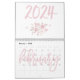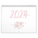 Calendário de parede moderno 2024 com belas ilustrações de rosas e texto de script cor-de-rosa escrito dentro no calendário.