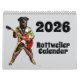 A dog calendar featuring Rottweilers in twelve unique and humorous depictions.