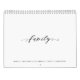 Mande um belo presente personalizado para a sua família que eles vão apreciar. Calendário especial personalizado de colagem de fotos da família para mostrar suas próprias fotos e memórias especiais da família. O design frontal apresenta um simples design de grade de colagem de 8 fotos com "Família" projetado em um belo estilo de script preto manuscrito. Cada foto é emoldurada por uma simples imagem dourada. Personalizar com os nomes dos membros da família. Cada mês apresenta uma imagem do tamanho do cheio do solteiro com o mês escrito em uma elegante caligrafia preta, mostrada levemente sobre cada foto.