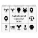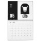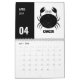 Um calendário criativo com 12 sinais de zodíaco védico em designs geométricos inspirados nos seus significados originais; animal, ave, criatura marinha ou forma humana, organizado mensalmente de acordo com a astrologia védica tradicional.