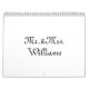 Calendário Sr. & Sra. White Black Custom Script Name elegant