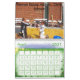 Calendário 2018, grande (esse é o tamanho que eu queria). As fotos são de acordo com o que aparece no site, além disso a qualidade do papel é muito boa, melhor do que normalmente se vê nos calendários.