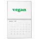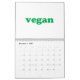Calendário de tipografia moderna, branco e verde, do Vegan.
