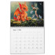 Calendário de cheio ano com as obras pintadas e colaboradas digitalmente de Manuela Davis.