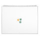 Calendário três flores com pétalas verdes e laranja
