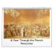Calendário anual que caracteriza imagens da Revolução Francesa relevante ao mês