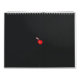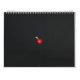 A design apresenta um gráfico estilizado de uma flor vermelha com um centro marrom. Acima da flor, há um ponto preto conectado por uma linha curva rosa, sugerindo movimento, como se o ponto estivesse sendo jogado fora da flor. Este design pode simbolizar crescimento, mudança ou movimento.