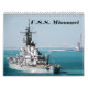 calendário com imagens mensais do navio de guerra USS Missouri.