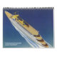 Um calendário de 12 meses de vintage com viagem, incluindo cenas de viagem, incluindo navios de cruzeiro, aviões, comboios, automóveis e um depósito de ônibus.