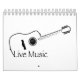 Um típico violão acústico com texto de música ao vivo isolado sobre um fundo branco