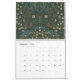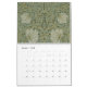 Todas as imagens neste calendário são padrões criados pelo designer têxtil do século XIX, William Morris - há catorze no total, incluindo cobrir dianteiro e traseiro. Os padrões incluídos neste calendário aparecem em ordem consecutiva e são os seguintes: (Cobrir frontal) Rosa e Rosa, Pimpernel, Marigold, Daisy, Violet and Columbine, Peacock and Dragon, Santo James Palace, Rosa, Brer Rabbit, Blackthorn, Floral Embroiderme, Jasmine, Bullerswood e (Cobrir traseiro) Cornelle.