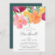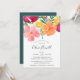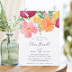 Os convites de chuvas florais para bebês elegantes apresentam uma cascata de flores de papoila de cor d'água em tons vibrantes de pêssego, rosa e violeta. Personalize com os detalhes do seu chá de fraldas abaixo em uma mistura chic de blocos, itálico e tipos de caligrafia.