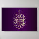 Uma bela caligrafia islâmica de Bismillah al-Rahman al-Rahim num design metálico esticado sobre um fundo roxo muito escuro. Este impressão está disponível no poster, como tela impressa e em muitos outros produtos, que são belos presentes para muçulmanos.