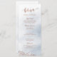 Menu elegante de caligrafia moderna com design floral rústico em cor castanho de cobre em fundo de cor azul-d-água poeirento, excelente para casamento rústico moderno, casamento ou casamento no inverno da primavera. Veja todas as peças correspondentes na coleção abaixo.