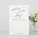 Este elegante jogo de caligrafia dourada "onde eles estavam" é perfeito para um simples chá de panela. A design neutra apresenta um cartão de jogo minimalista decorado com tipografia de folha de ouro romântica e caprichosa. Nota: Este design não apresenta folha de ouro real. É um gráfico de alta qualidade feito para se parecer com folhas de ouro.
