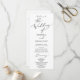Essa delicada caligrafia negra, o casamento do programa é perfeito para um casamento moderno. A design romântica minimalista apresenta uma magnífica e elegante tipografia negra num fundo branco com um aspecto simples e limpo. Inclua o nome da noiva e do noivo, a data e o local do casamento, a mensagem do obrigado, a ordem do serviço, a festa noiva e um memorial "em memória amorosa" opcional.