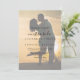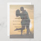 Este convite de casamento da nuestra de fotos de caligrafia é perfeito para um casamento rústico. O design simples e elegante apresenta tipografia de script clássico e rico com uma foto de casal desbotada no fundo.
