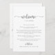 Esta carta de boas-vindas de prata da caligrafia é perfeita para um casamento rústico. O design simples e elegante apresenta tipografia de script clássico e rico em prata. Personalize a frente com uma mensagem de boas-vindas para seus convidados e seus nomes. Personalize as costas com a programação de eventos e outras informações úteis.
