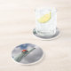 Uns 7 mancharam o joaninha em uma folha da alcachofra sob céus tormentosos em uma porta copos.