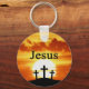 O nome sagrado de Jesus num fundo impressionista do calvário no nascer do sol