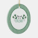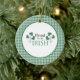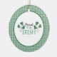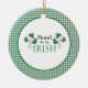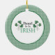 Um ornamento cerâmico redondo para o Dia de São Patrício, com folhas verdes de Shamrock e "Orgulho de ser Irlandês" em roteiros Célticos, num fundo branco com uma fronteira Check Gingham. Parte da coleção 'Shamrocks' Posh & Painterly.