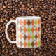 Saboreie com estilo esta caneca de café **"Câmera de Meados do Século – Geométrica Chic"**! O vibrante padrão geométrico com diamantes e estrelas em laranja, verde e marrom ricos, contra um fundo branco esbranquiçado, traz o sentimento retrô perfeito para a sua rotina matinal. Quer você esteja desfrutando de café, chá ou sua bebida favorita, esta caneca adiciona um toque de charme vintage a cada gole.