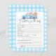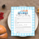 O convite para abóboras com um caminhão azul-aquarela cheio de abóboras. Gaiola azul. Personalize com suas informações.