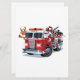 Caminhão de bombeiros de Natal retrô de desenho animado, Papai Noel e renas