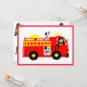 Convite de festas infantil de caminhão de bombeiros. Substitua o texto do espaço reservado por suas informações. Adicione e apague conforme necessário. Você também pode alterar a fonte e a cor do texto