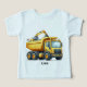Essa camiseta dos meninos bonitos tem um caminhão-bomba e um mini escavador pode ser personalizado com seu nome de amiguinho ou amigo