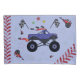 Um design de caminhão de monstro divertido com uma dica de cores arco-íris.