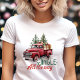 Celebre a temporada de festas com este charmoso design inspirado em vintage, apresentando um caminhão vermelho festivo carregando árvores de Natal e presentes. A mensagem atemporal, "Jingle All The Way", adiciona um toque nostálgico, tornando esta camisa perfeita para espalhar alegria natalina. Se você está participando de uma festa de Natal ou simplesmente aproveitando o aconchego do inverno, esta camisa certamente se tornará uma favorita. Seu design retrô e tema clássico de Natal o tornam um excelente presente para os entes queridos, especialmente aqueles que apreciam um pouco de nostalgia natalina.