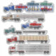 Conjunto de adesivos do Caminhãozinho Vermelho e Caminhão Grande. Apresenta a arte original "Little Red Truck" de Rick Ellinger. Transportador de automóveis de grande porte, tanque, reboque de plataforma vazio e plataforma com caixas de maçã e transportador de gado COE. Além do transportador de automóveis de caminhão reto. Ótimo para scrapbooking, decorar canecas, garrafas de água e muitos outros itens, adesivos de carro e muito mais. Presente perfeito para o motorista de caminhão na sua lista de presentes ou para a criança que ama adesivos ou caminhões. 6 adesivos individuais grandes.
