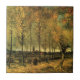 Caminho com Choupos de Vincent van Gogh é uma pintura de paisagem de arte fina vintage pós-impressionista da natureza. Árvores choupo alinham a rua e as pessoas estão caminhando ao longo de uma estrada com uma vila ao fundo. Uma igreja está no centro da cidade. As folhas são douradas e estão prestes a cair das árvores na época do outono.