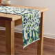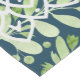 This striking table runner features a layered pattern where delicate leaves are overlaid with bold, contrasting mandalas