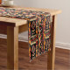 Melhore sua decoração de mesa com nosso vibrante corredor mesa inspirado na África, com padrões geométricos ousados em vermelho, ouro-amarelo e creme. Mostrando um rico fundo negro com listras rítmicas, triângulos, círculos e diamantes, esta abstrato contemporânea captura a essência da arte tribal. Perfeito por adicionar um toque de elegância cultural e talento colorido a qualquer cenário.