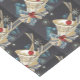 Belo corredor de mesa com um sino prateado que tem sotaques dourados e bonito sinos azuis turquesa em fundo preto. Há uma fita de ouro e prata com groselhas vermelhas e ramos de pinho. Belo e elegante suplemento à sua decoração de férias.