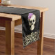 Design apresenta um crânio floral gótico com ornamentos de ouro sobre fundo preto. O crânio é acentuado com belos rosas roxos, acrescentando um toque de elegância escura e sofisticação. Quer você esteja hospedando uma festa de Halloween ou simplesmente querendo adicionar um toque de golpe gótico em sua decoração doméstica, nosso corredor de Mesa do estilo gótico é a escolha perfeita.