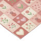 A cute and highly decorative pattern, hand-drawn and then digitally illustrated. ----- Whimsical, rustic garden patchwork pattern in shades of red and pink. Features hand-painted illustrations of hearts, ladybugs, and spring flowers arranged in a faux-stitched quilt grid. A sweet, nostalgic design with a heartwarming aesthetic.